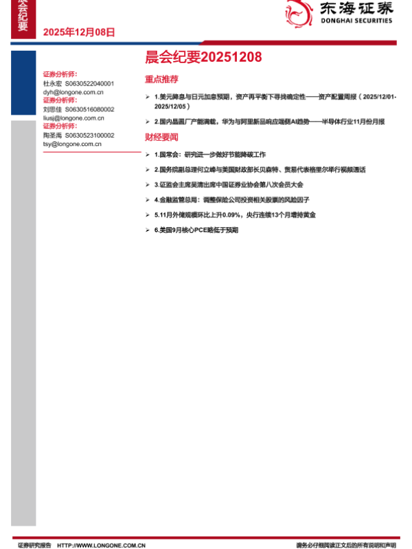 【东海证券】【202512】晨会纪要20251208-10页 会议纪要