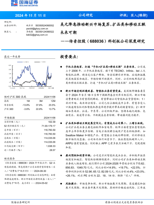 【国海证券】【20241111】传音控股(688036)科创板公司深度研究:美元降息推动新兴市场复苏,扩品类和移动互联未来可期-34页 行业研究