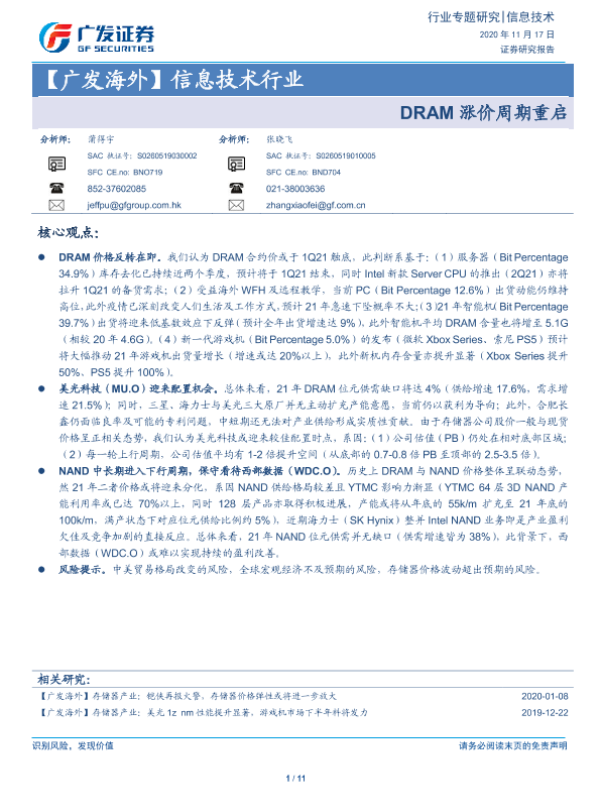 【广发证券】【20201117】【广发海外】信息技术行业:DRAM涨价周期重启-11页 行业研究