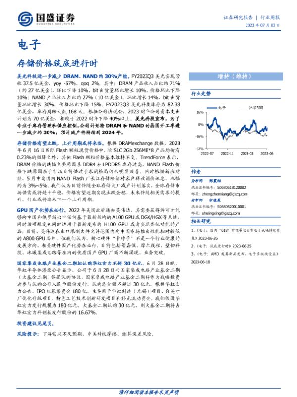 【国盛证券】【20230703】20230703-国盛证券-电子行业周报:存储价格筑底进行时-17页 行业研究