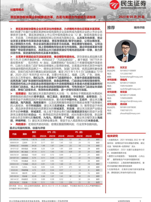 【民生证券】【20230529】社服周观点:景区旅游板块国企积极推进改革,古茗与美团合作启动万店加速-22页 行业研究