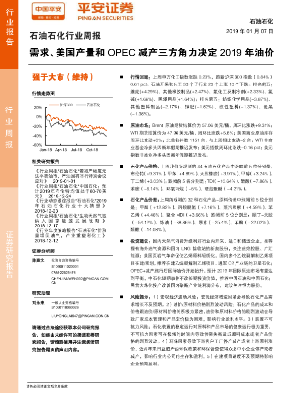【平安证券】【20190107】石油石化行业周报:需求、美国产量和OPEC减产三方角力决定2019年油价-28页 行业研究