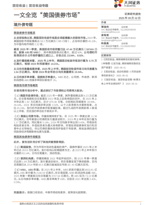 【天风证券】【202509】一文全览“美国债券市场”-30页 证券期货研究报告