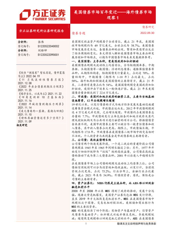 【方正证券】【20220930】海外债券市场观察1:美国债券市场百年变迁-26页 行业研究