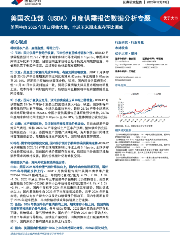 【国信证券】【202512】美国农业部(USDA)月度供需报告数据分析专题_美国牛肉2026年进口预估大增_全球玉米期末库存环比调减-38页 证券期货研究报告