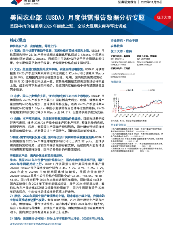 【国信证券】【202601】美国农业部(USDA)月度供需报告数据分析专题:美国2026年牛价景气预计维持向上,全球玉米、大豆25/26产季期末库存环比调增-37页 证券期货研究报告