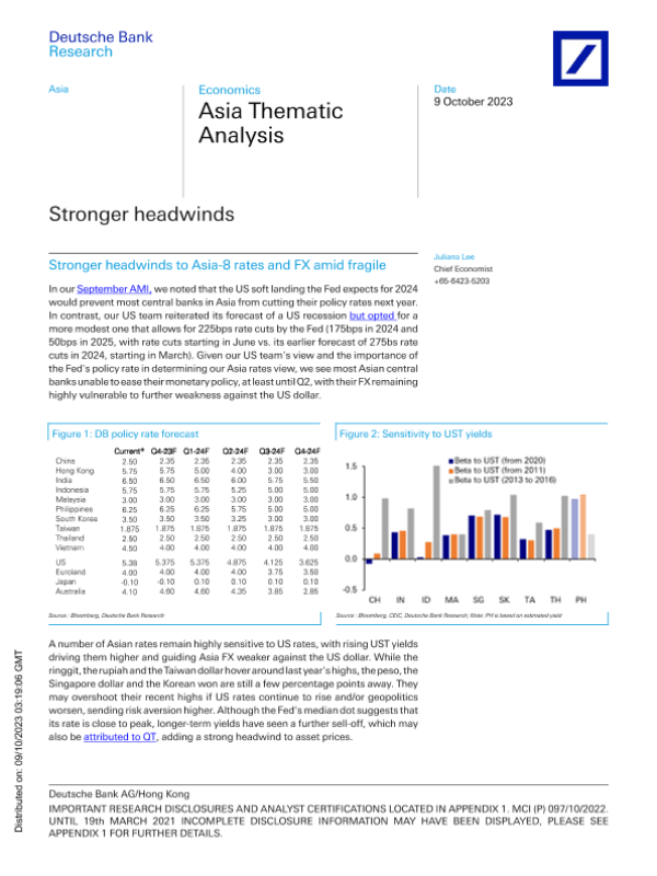 【Deutsche Bank】【20231009】Deutsche Bank-Asia Thematic Analysis Stronger headwinds-12页 宏观策略