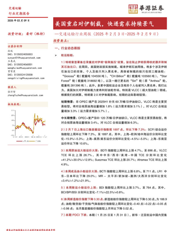 【华源证券】【20250209】交通运输行业周报:美国重启对伊制裁,快递需求持续景气-15页 行业研究