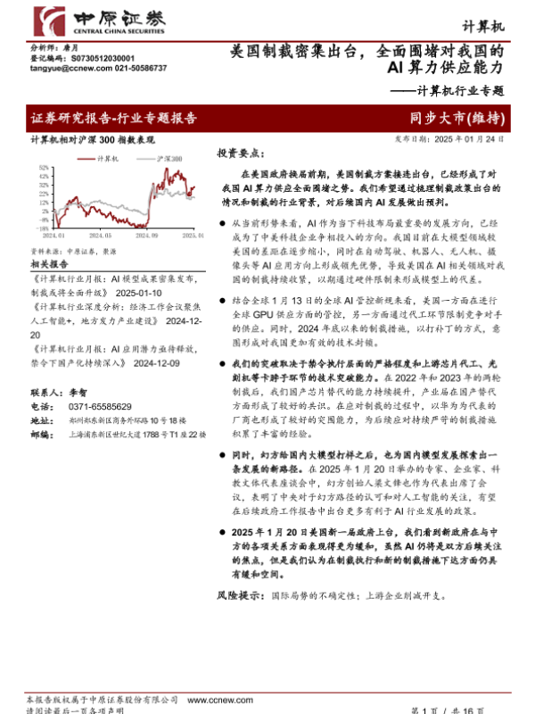【中原证券】【20250124】计算机行业专题:美国制裁密集出台,全面围堵对我国的AI算力供应能力-16页 行业研究