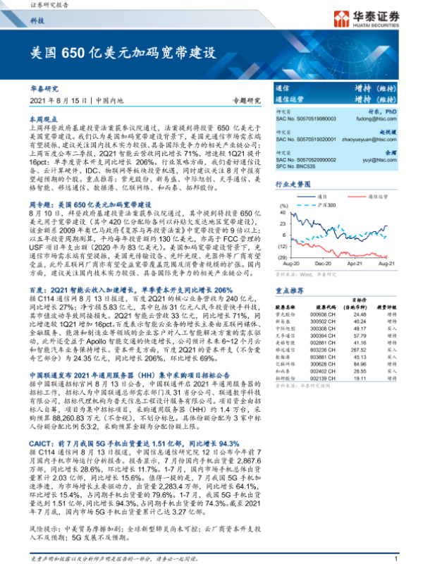 【华泰证券】【20210815】美国650亿美元加码宽带建设-21页 行业研究