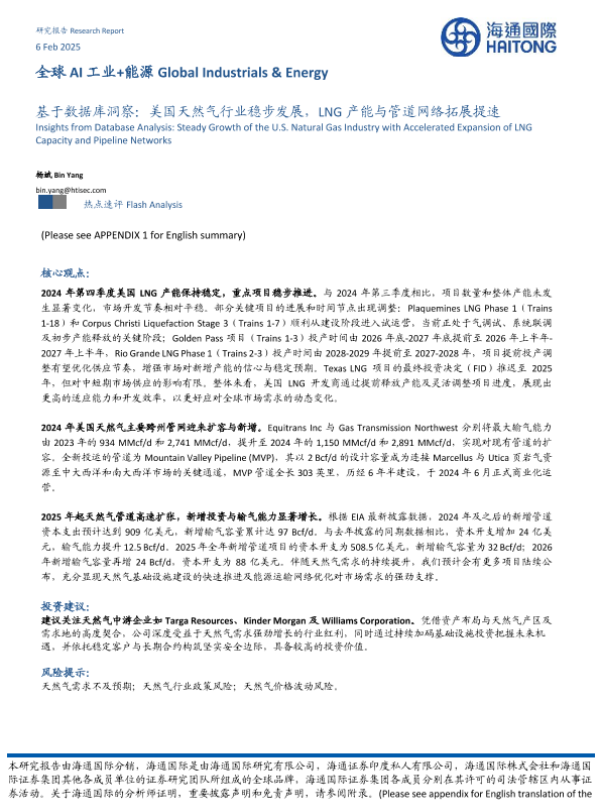 【海通国际】【20250206】基于数据库洞察:美国天然气行业稳步发展,LNG产能与管道网络拓展提速-11页 行业研究