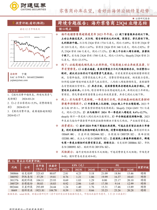 【财通证券】【20240325】商贸零售行业跨境专题报告-海外零售商23Q4业绩总结:零售商补库在望,看好出海供应链修复趋势-12页 行业研究