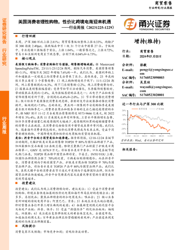 【甬兴证券】【20240105】商贸零售行业周报:美国消费者理性购物,性价比跨境电商迎来机遇-14页 行业研究