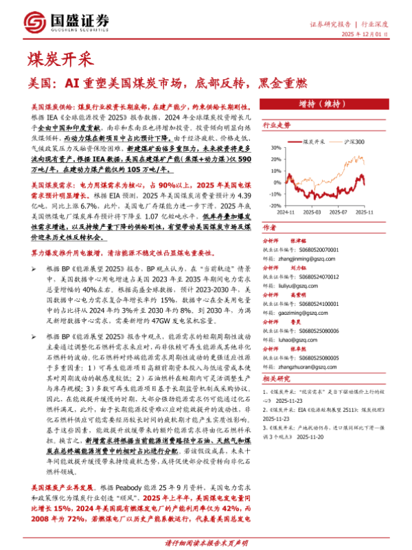 【国盛证券】【202412】美国:AI重塑美国煤炭市场,底部反转,黑金重燃-26页 证券期货研究报告