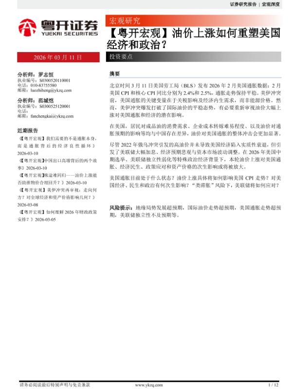 【粤开证券】【202603】油价上涨如何重塑美国经济和政治?-12页 证券期货研究报告