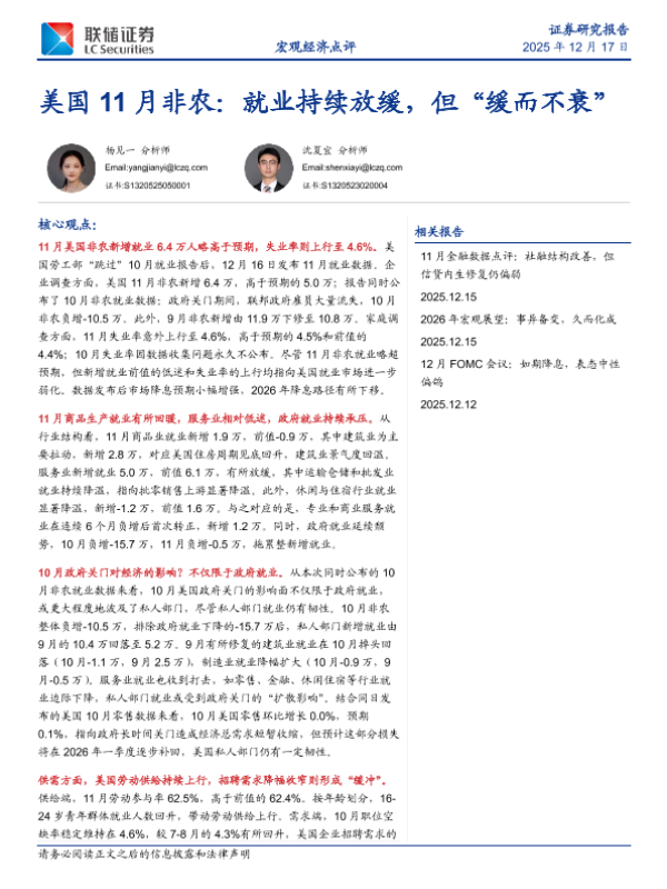 【联储证券】【202512】美国11月非农:就业持续放缓,但“缓而不衰”-11页 证券期货研究报告