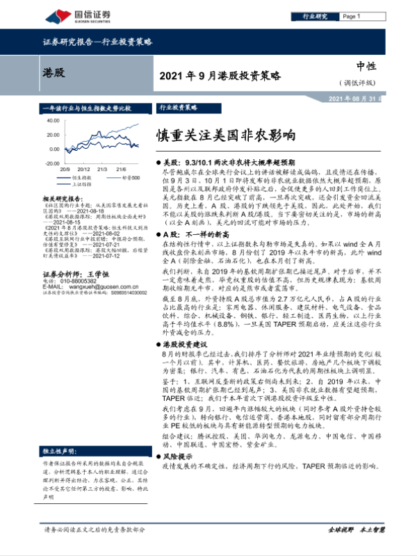 【国信证券】【20210831】2021年9月份港股投资策略:慎重关注美国非农影响-25页 行业研究