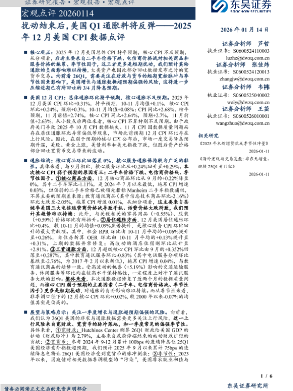 【东吴证券】【202601】扰动结束后,美国 Q1通胀料将反弹——2025年 12月美国 CPI数据点评-6页 证券期货研究报告