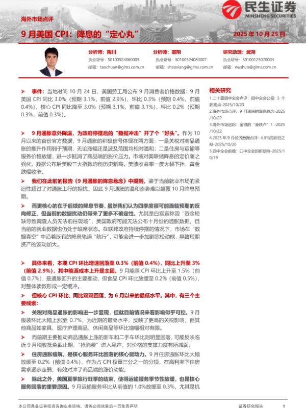 【民生证券】【202510】9月美国CPI:降息的“定心丸”-7页 证券期货研究报告