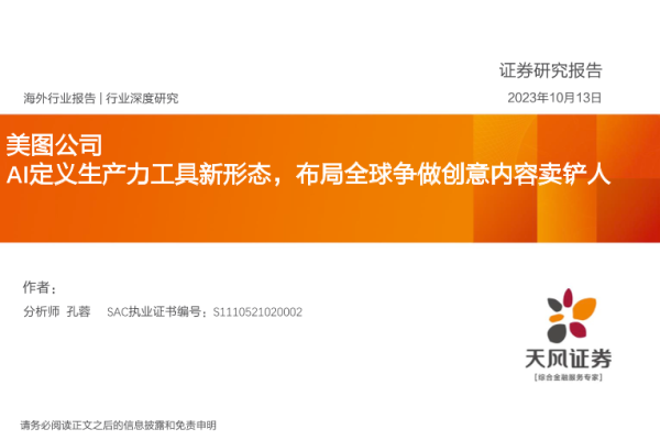 【天风证券】【20231013】美图公司-AI定义生产力工具新形态-布局全球争做创意内容卖铲人-20页 行业研究