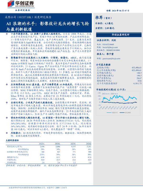 【华创证券】【20240607】美图公司(1357.HK)深度研究报告:AI浪潮的水手,影像设计龙头的增长飞轮与盈利新航道-28页 行业研究