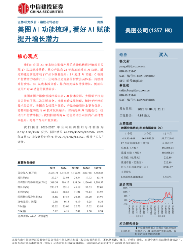 【中信建投证券】【20250421】美图AI功能梳理,看好AI赋能提升增长潜力-11页 公司研究