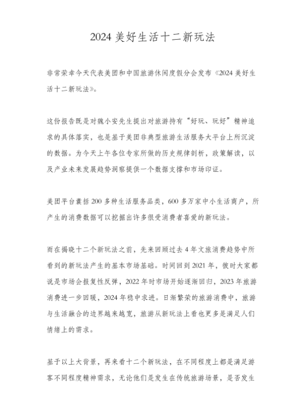 【美团和中国旅游休闲度假分会】【2024】2024美好生活新玩法报告-26页 市场调研