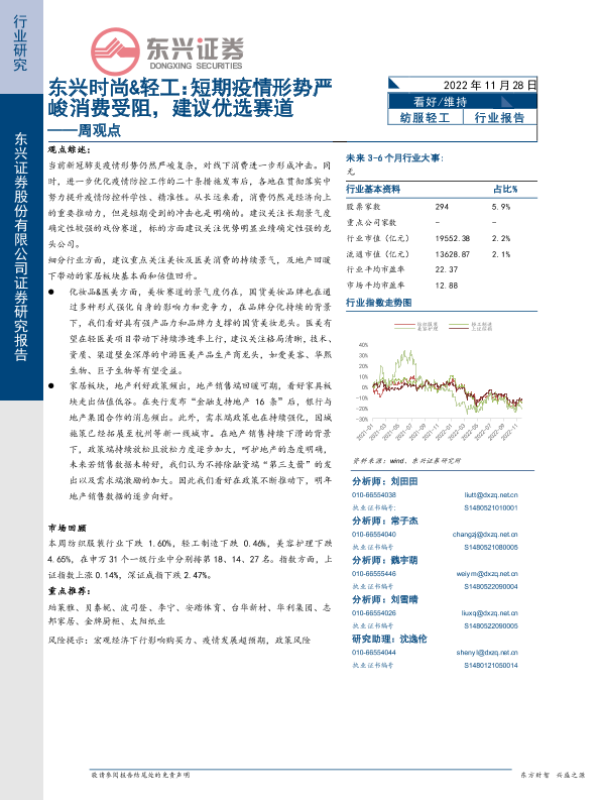 【东兴证券】【20221128】东兴时尚&轻工周观点:短期疫情形势严峻消费受阻,建议优选赛道-15页 行业研究