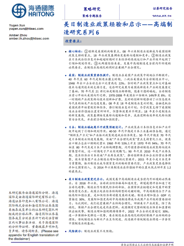 【海通证券】【20240715】美日制造业政策经验和启示——高端制造研究系列 6-11页 行业研究