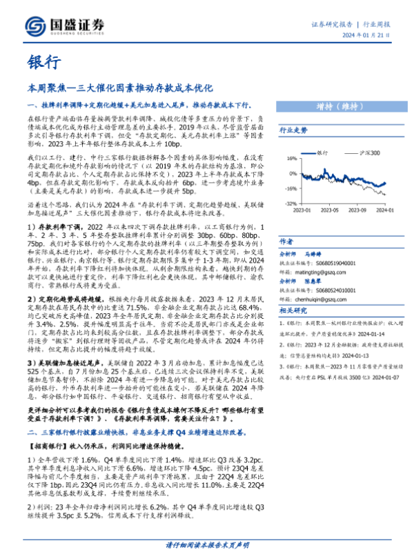 【国盛证券】【20240121】银行本周聚焦—三大催化因素推动存款成本优化-18页 行业研究