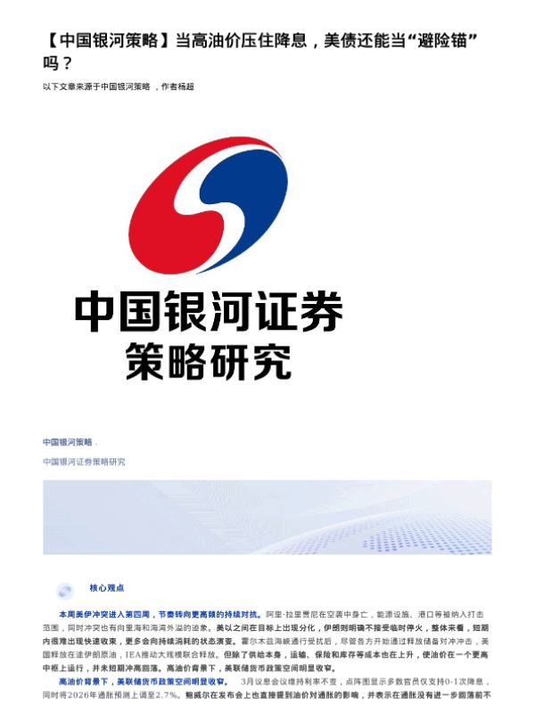 【银河证券】【202603】当高油价压住降息,美债还能当“避险锚”吗?-9页 证券期货研究报告