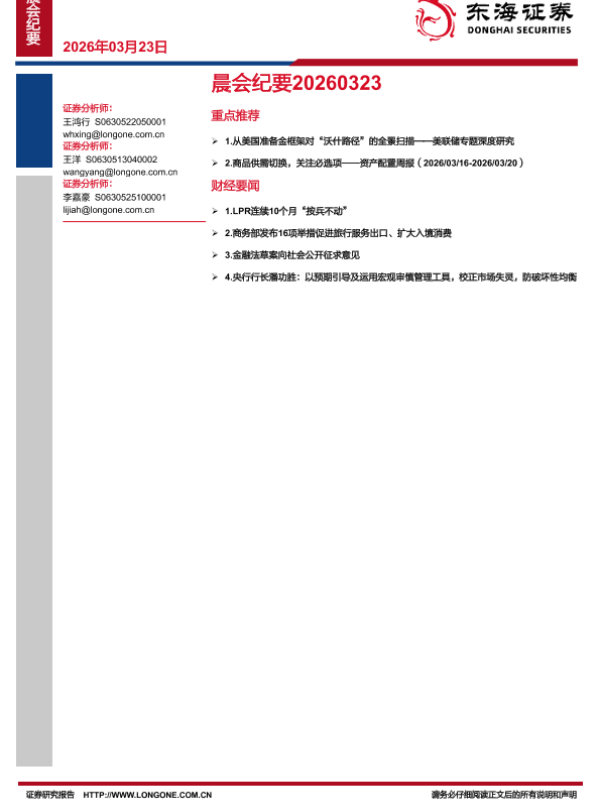【东海证券】【202603】晨会纪要20260323-10页 会议纪要
