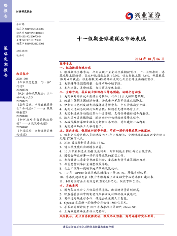 【兴业证券】【20241006】十一假期全球要闻&市场表现-11页 宏观策略