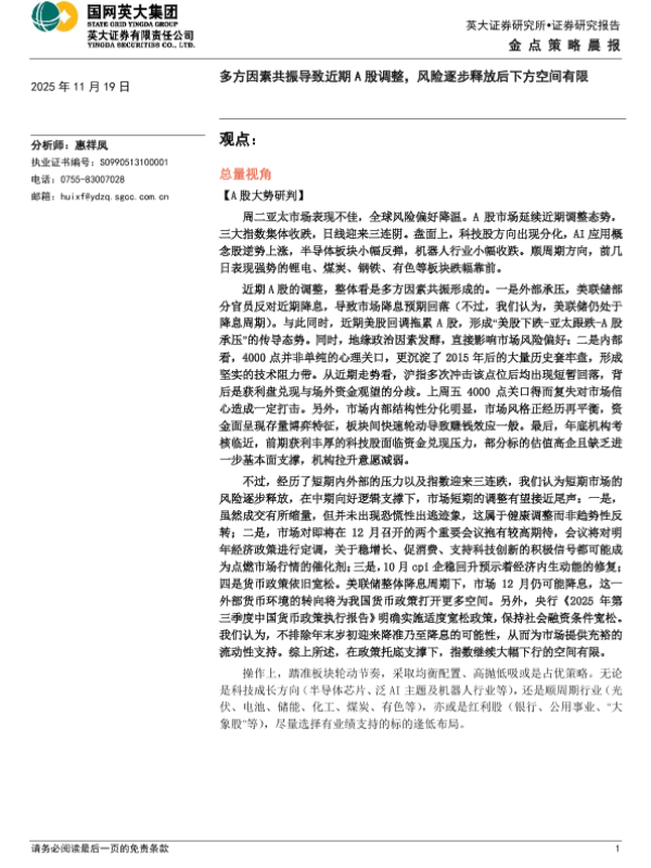 【英大证券】【202511】多方因素共振导致近期A股调整,风险逐步释放后下方空间有限-5页 证券期货研究报告