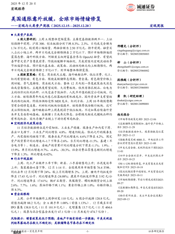 【诚通证券】【202512】美国通胀意外放缓,全球市场情绪修复-20页 证券期货研究报告