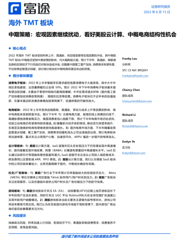 【富途证券】【20220615】海外TMT行业板块中期策略-25页 证券期货研究报告