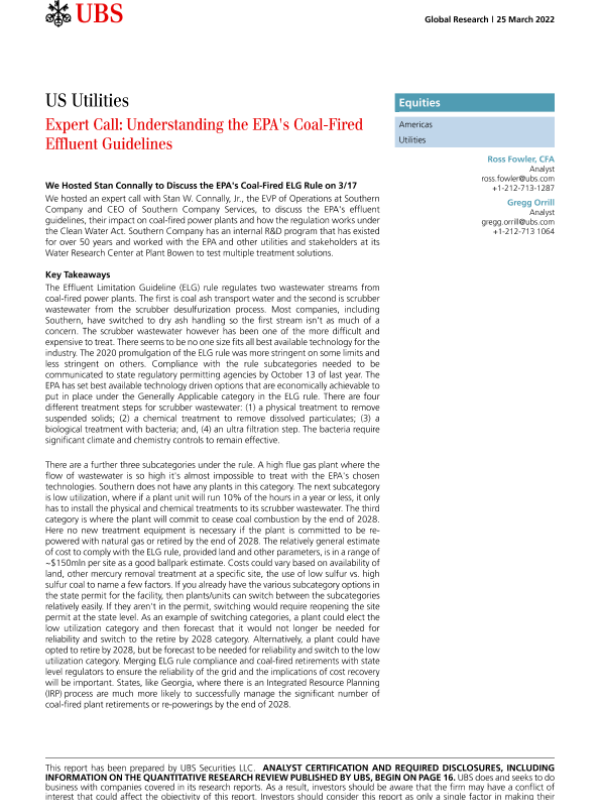 【瑞银】【20220325】瑞银-美股公用事业行业-专家电话:了解EPA的燃煤排放指南-22页 会议纪要