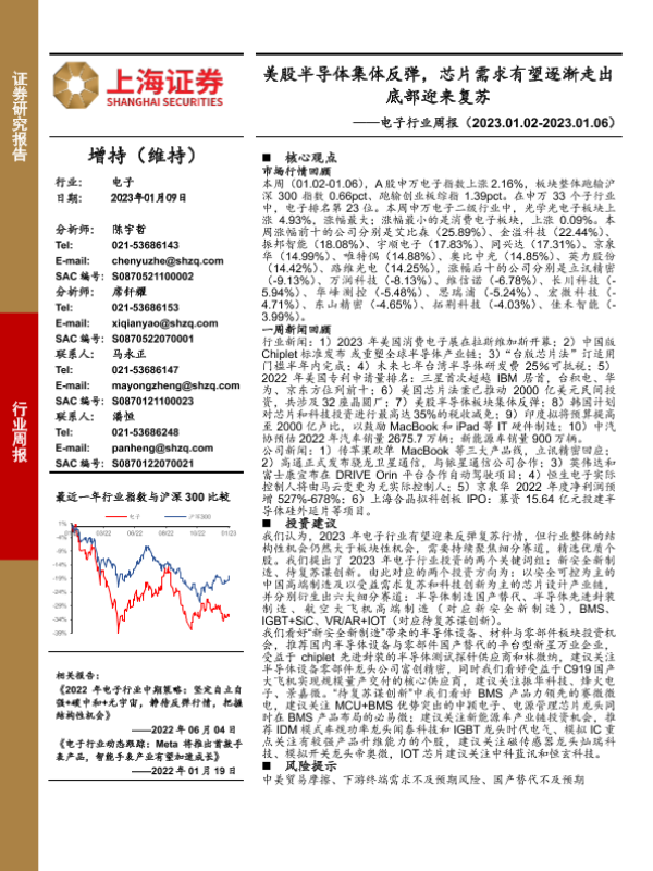 【上海证券】【20230109】美股半导体集体反弹,芯片需求有望逐渐走出底部迎来复苏-12页 行业研究