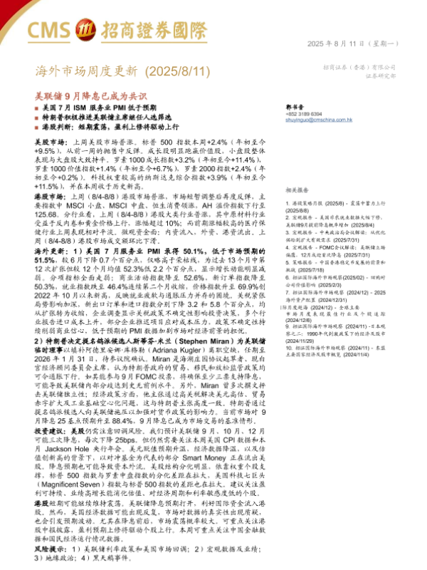 【招商证券国际】【202508】海外市场周度更新 美联储9月降息已成为共识-18页 证券期货研究报告