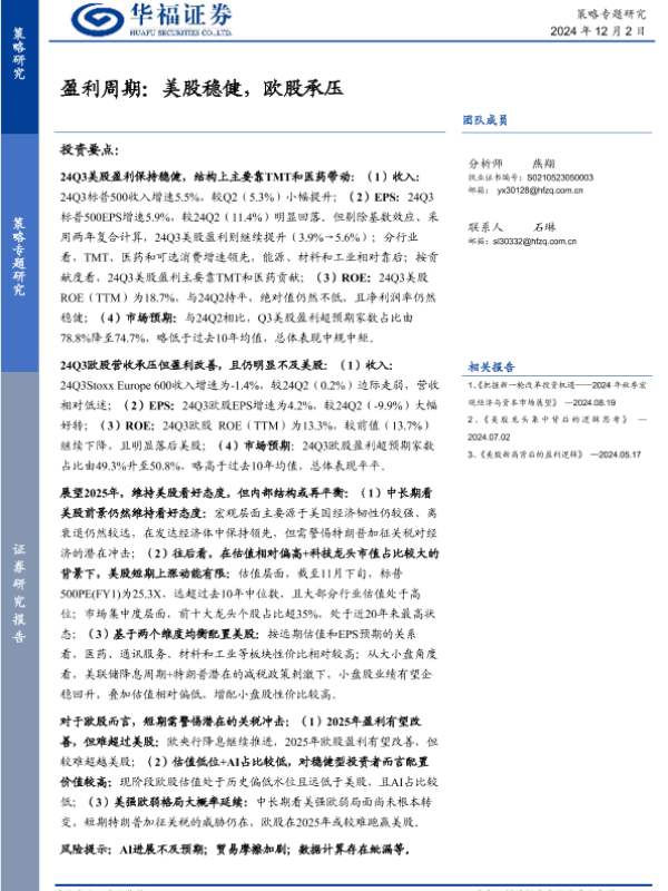 【华福证券】【20241202】盈利周期:美股稳健,欧股承压-22页 行业研究