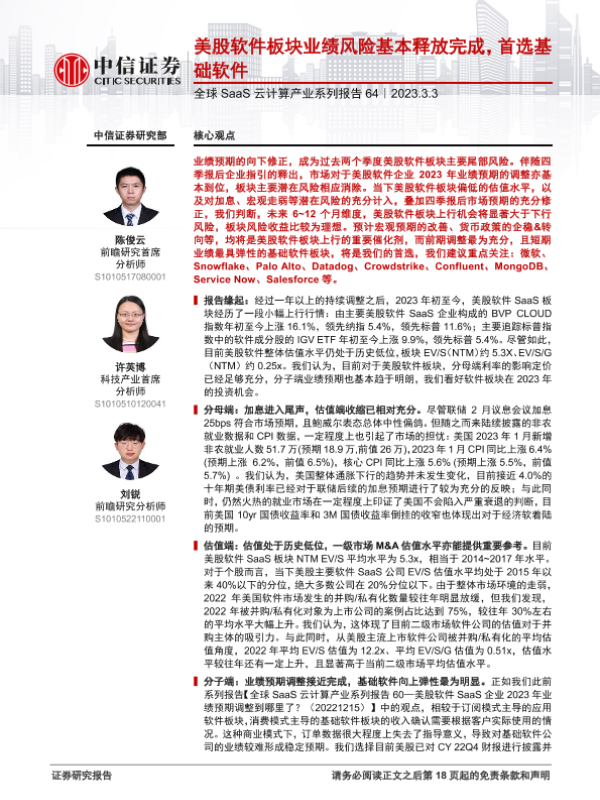 【中信证券】【20230303】美股软件板块业绩风险基本释放完成,首选基础软件-19页 行业研究