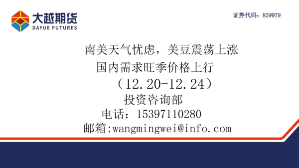 【大越期货】【20211224】南美天气忧虑,美豆震荡上涨,国内需求旺季价格上行-49页 行业研究