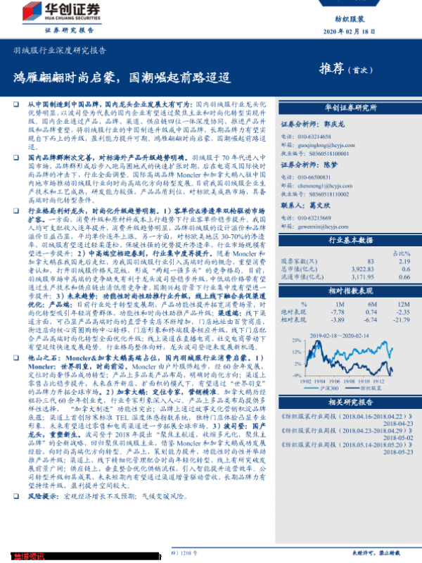 【华创证券】【20200218】20200218-华创证券-羽绒服行业深度研究报告:鸿雁翩翩时尚启蒙,国潮崛起前路迢迢-33页 行业研究