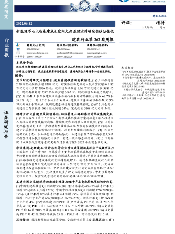 国泰君安证券 建筑业 2022年 PDF 4.45 MB