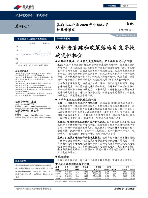 【国信证券】【20200706】基础化工行业2020年中期&7月份投资策略:从新老基建和政策落地角度寻找确定性机会-42页 行业研究