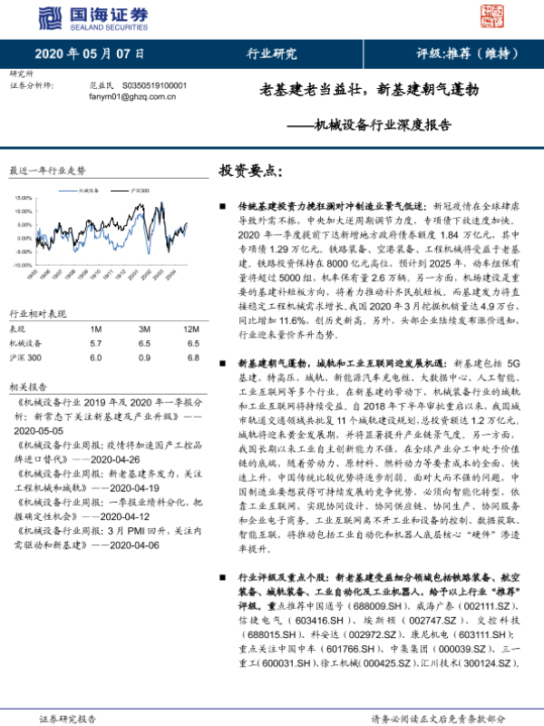 【国海证券】【20200507】老基建老当益壮,新基建朝气蓬勃——机械设备行业深度报告-24页 行业研究