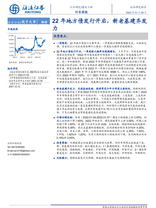 【海通证券】【20220109】22年地方债发行开启,新老基建齐发力-6页 行业研究