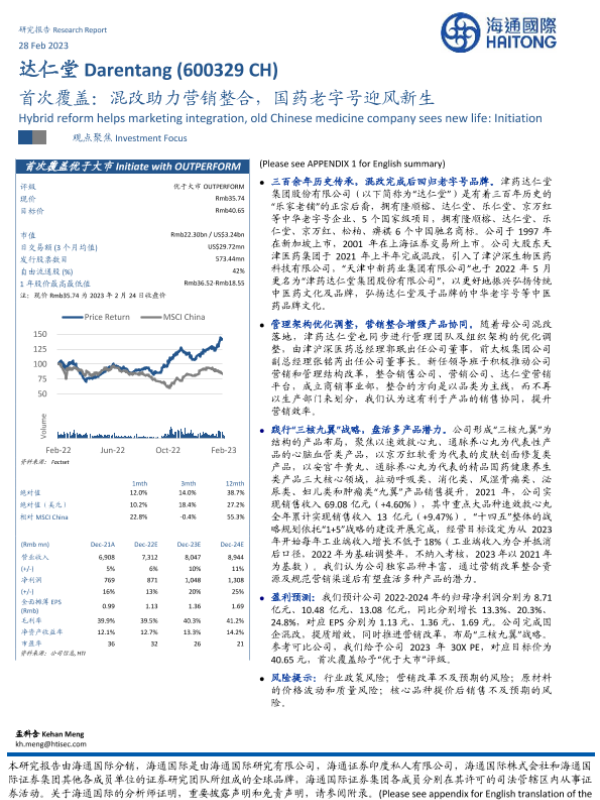 【海通国际】【20230228】达仁堂首次覆盖:混改助力营销整合,国药老字号迎风新生-23页 行业研究
