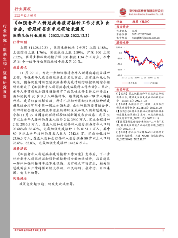 【东亚前海证券】【20221205】加强老年人新冠病毒疫苗接种工作方案出台后,新冠疫苗需求或将迎来爆发-12页 行业研究
