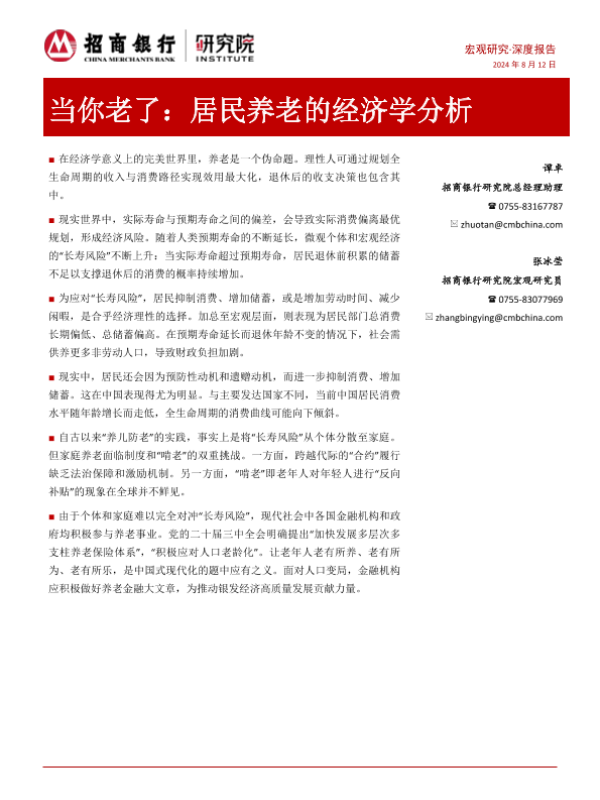 【招商银行】【20240905】当你老了:居民养老的经济学分析-9页 行业研究